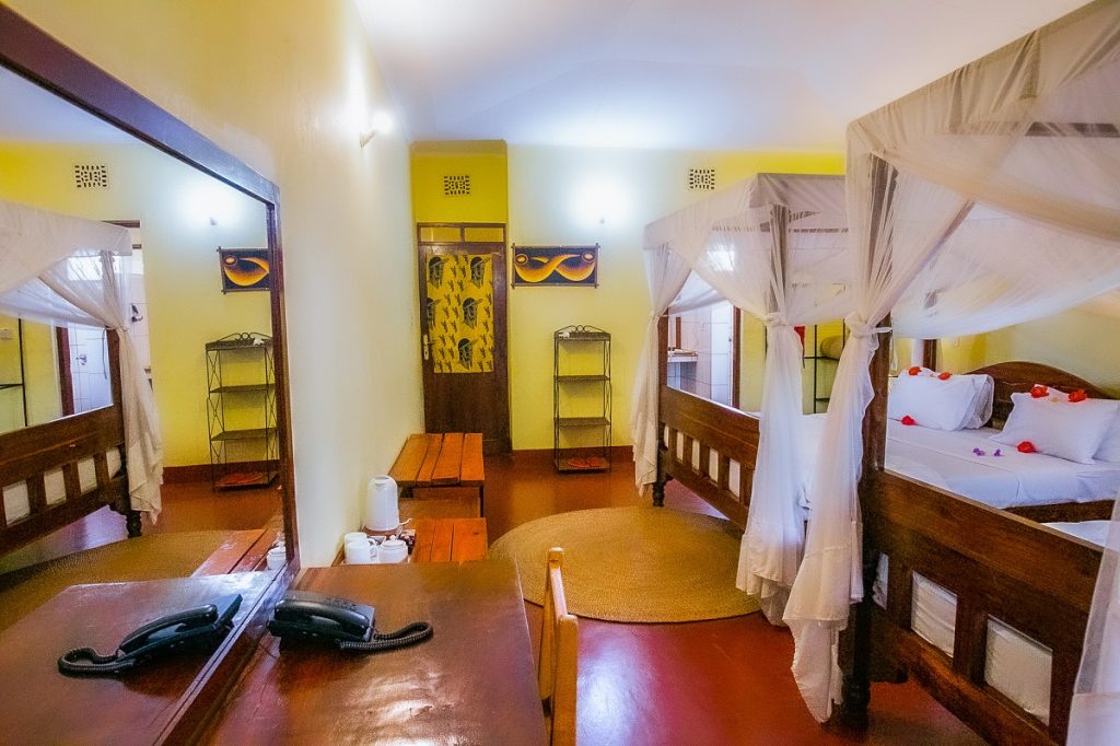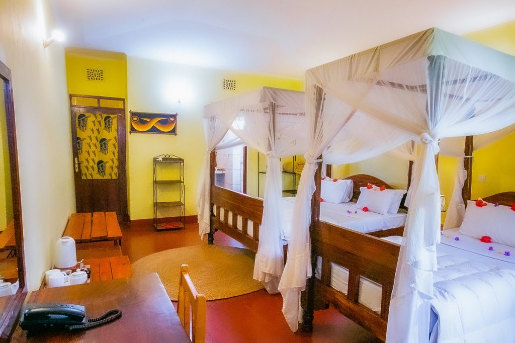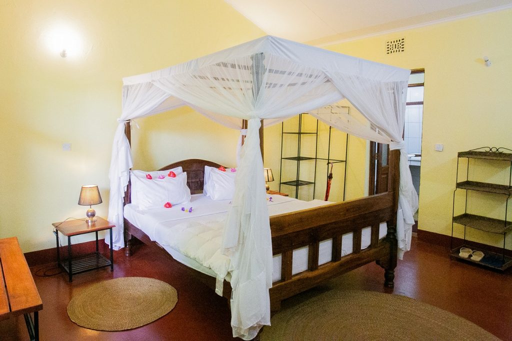 Our rooms have Single bed, twin beds or a large (queen size) bed and Triples with mosquito nets. All rooms have a writing desk and seating on the veranda. The bathrooms have a large shower with hot water on demand. Bottled drinking water is provided in every room.